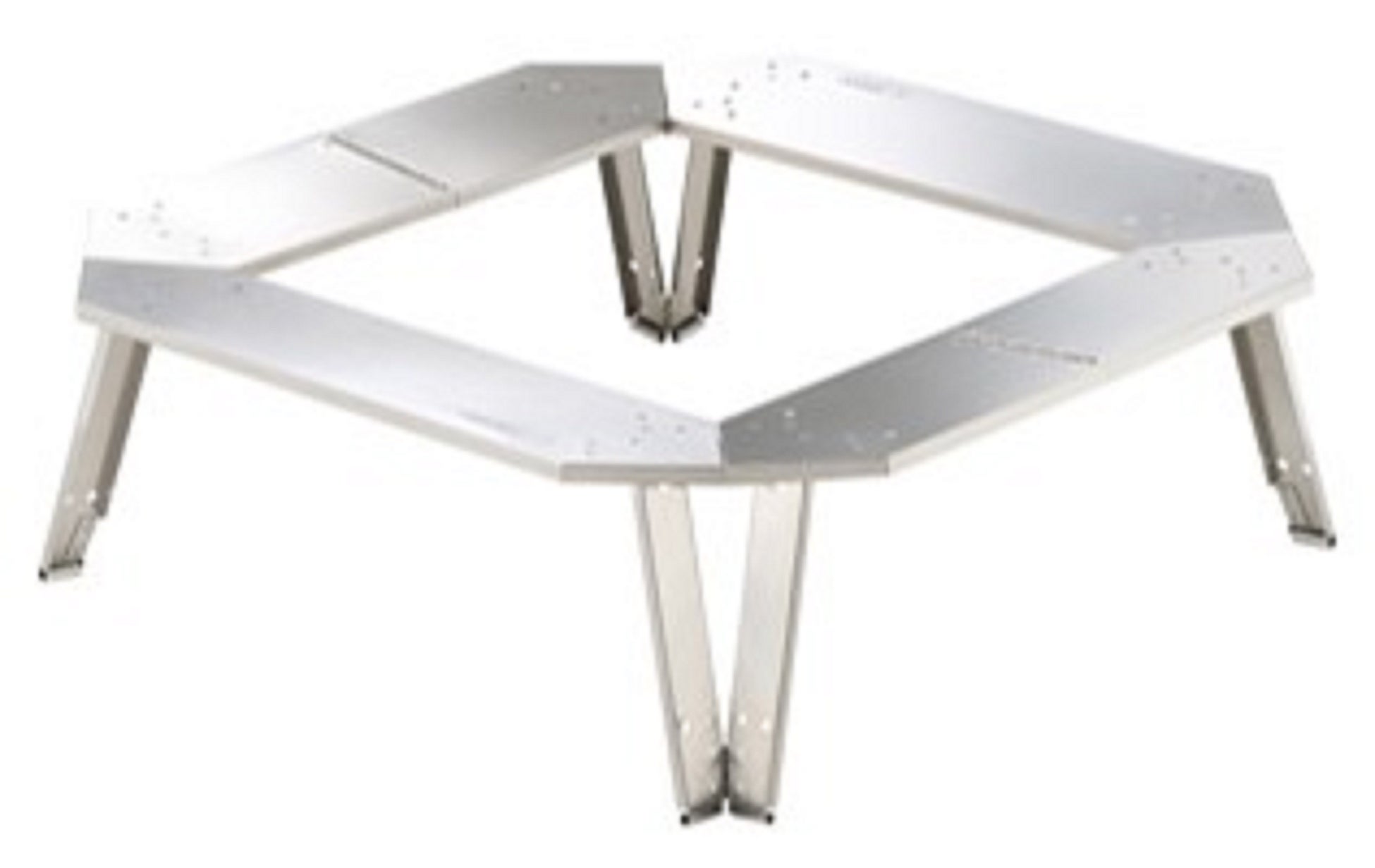 フラットな棒状を2本組み合わせたような形の足で四隅を支える構造になっており、ポール型の足で支える構造と比べると安定感抜群。各テーブルが独立していない一体型、かつ軽量なのでサイト内の移動もラクラク。