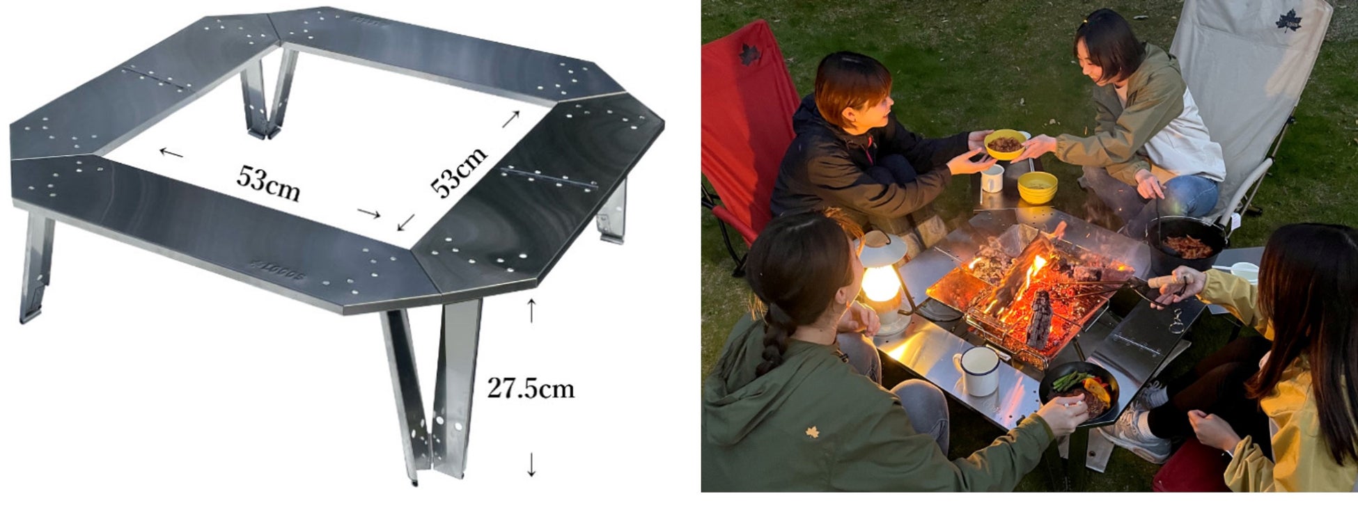 囲炉裏テーブルは、たき火を囲んで食事をする時に便利なアイテム。