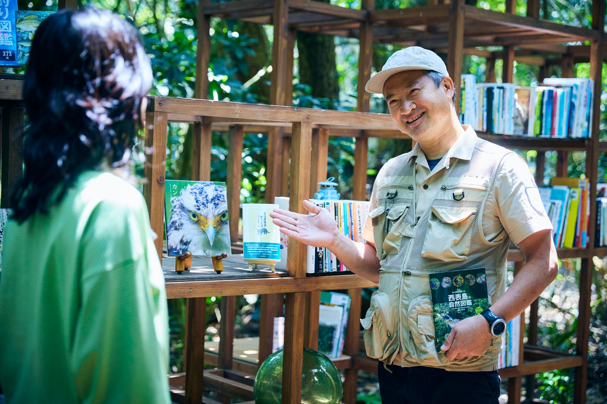 図書館員は、西表島で暮らし、日々敷地内のジャングルを調査しているホテルのガイドスタッフです。読みたい本の場所はもちろん、ジャングル内での最新情報や、島に住んでいるからこそ知っている口頭伝承など、本だけでは知り得ない情報を紹介します。ガイドスタッフとの交流を通じて、西表島の自然環境と、人々の暮らしとの密接な関わりを知ることができます。