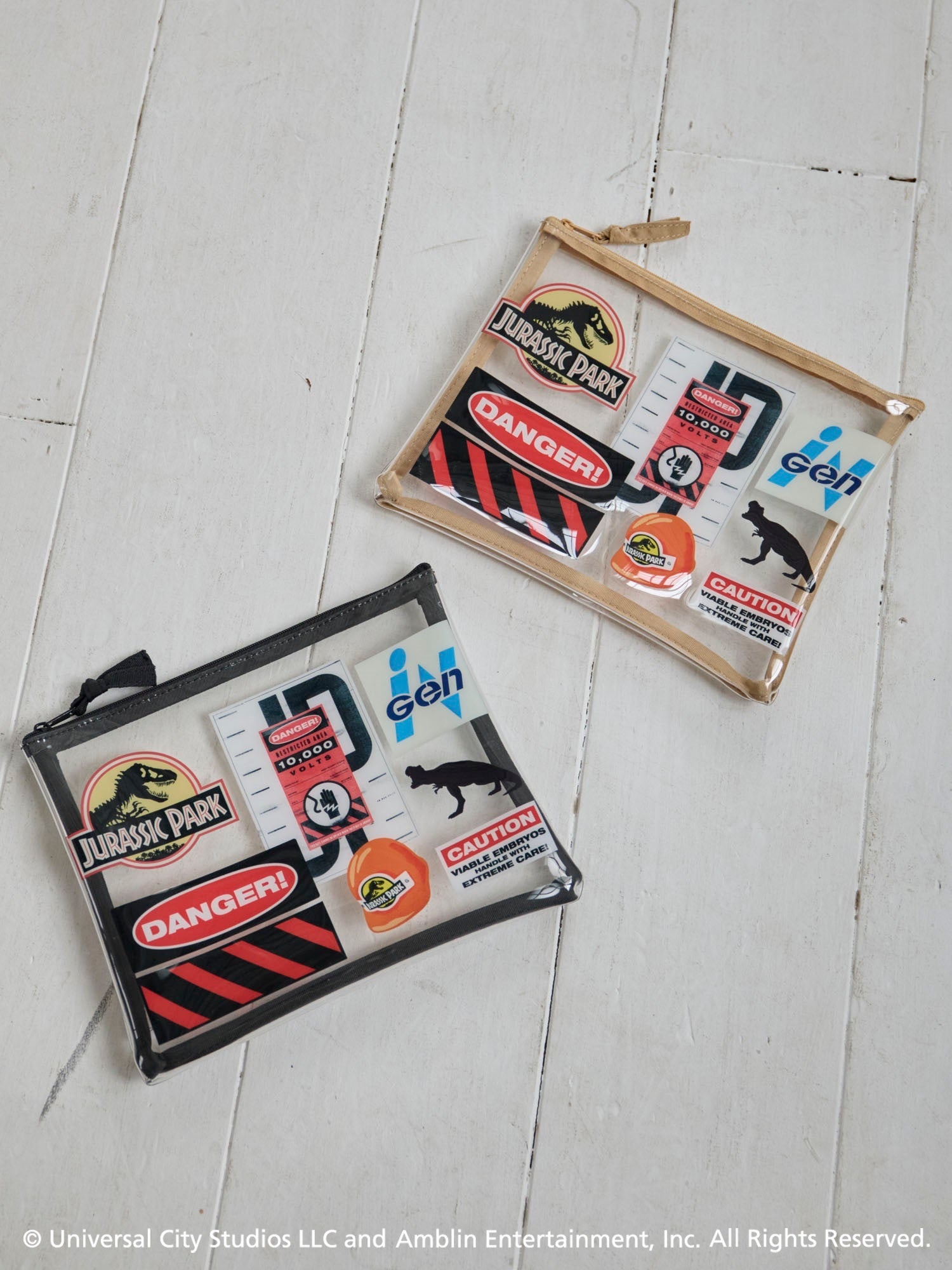 Tシャツは全8種類のデザインをラインアップ。作中に登場する人気キャラクター「Mr.DNA」を取り入れたデザインや、作中の印象的なシーンをフォトプリントしたものなど、プレミアムなTシャツをバリエーション豊富にご用意いたしました。雑貨アイテムは、『ジュラシック・パーク』のロゴに加え、T‐レックスの足跡でデザインした総柄、作中に登場する危険を知らせる看板などのモチーフを使用。ファンにはたまらないこだわりのデザインでお届けいたします。
