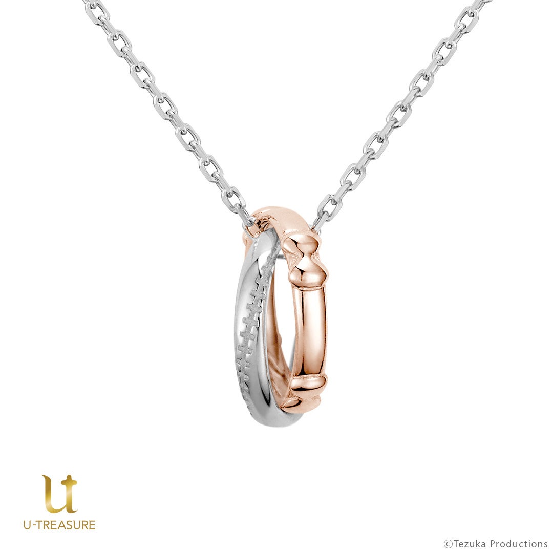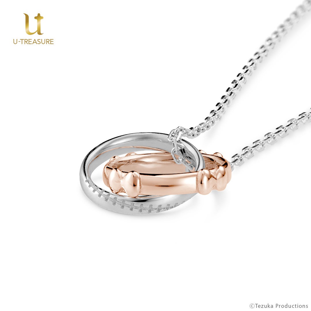 手塚治虫『ブラック・ジャック』50周年記念。ブラック・ジャックとピノコの絆を表現したダブルリングネックレス。プラチナ950×K18ピンクゴールドは限定50本