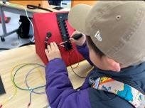 「配線作業体験」・・・ドライバーを使って正しく配線を繋げて、ライトを点灯しよう!