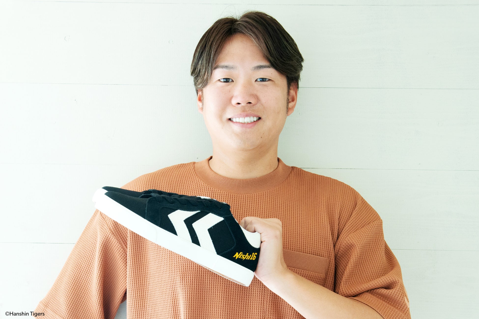 今回の契約を記念し、西選手、梅野選手のオリジナルロゴが入ったコラボスニーカーを発表。ボリューム感あるヒュンメルの定番スニーカー「DECADE LX-E」をベースに、かかとアウトサイド部分にそれぞれのオリジナルロゴを刻印。黒を基調としたクリーンなデザインにゴールドのロゴが映える1足です。