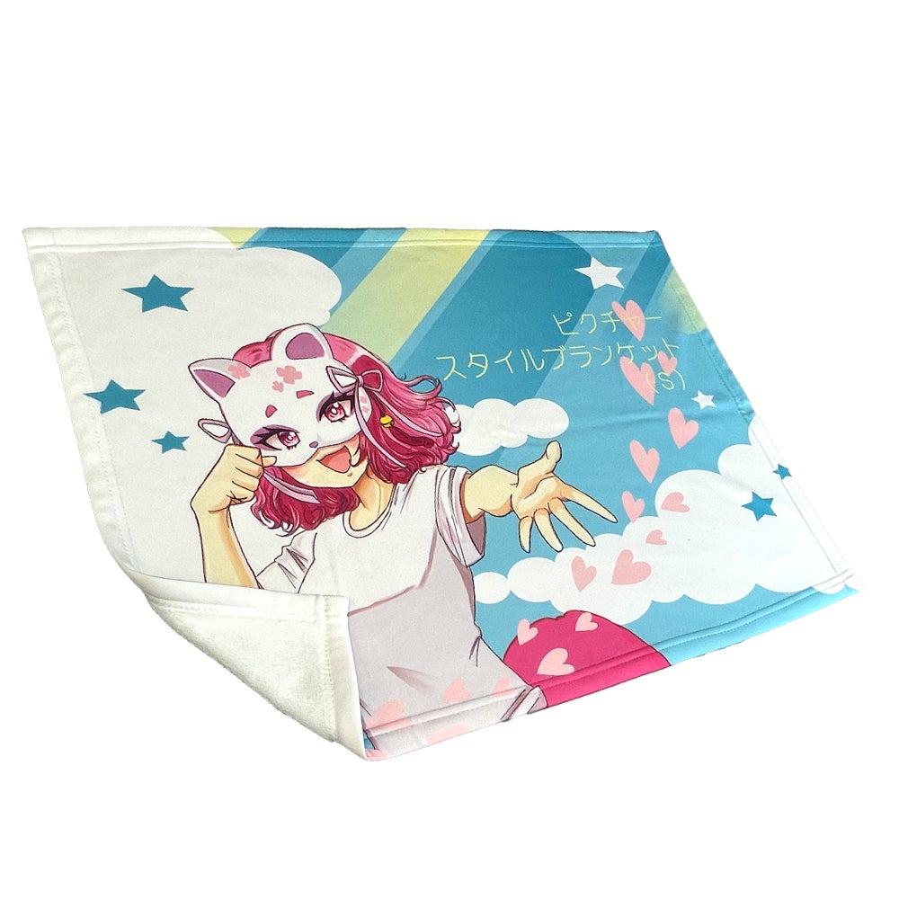 人気の全面プリントブランケットの発色がよりよくなってリニューアルしました。表面はフラットな生地で、毛の乱れもなく細かいデザインも表現することができます。サイズはS・Mの2サイズ展開で、どこで使うかに合わせてお選びいただけます。
