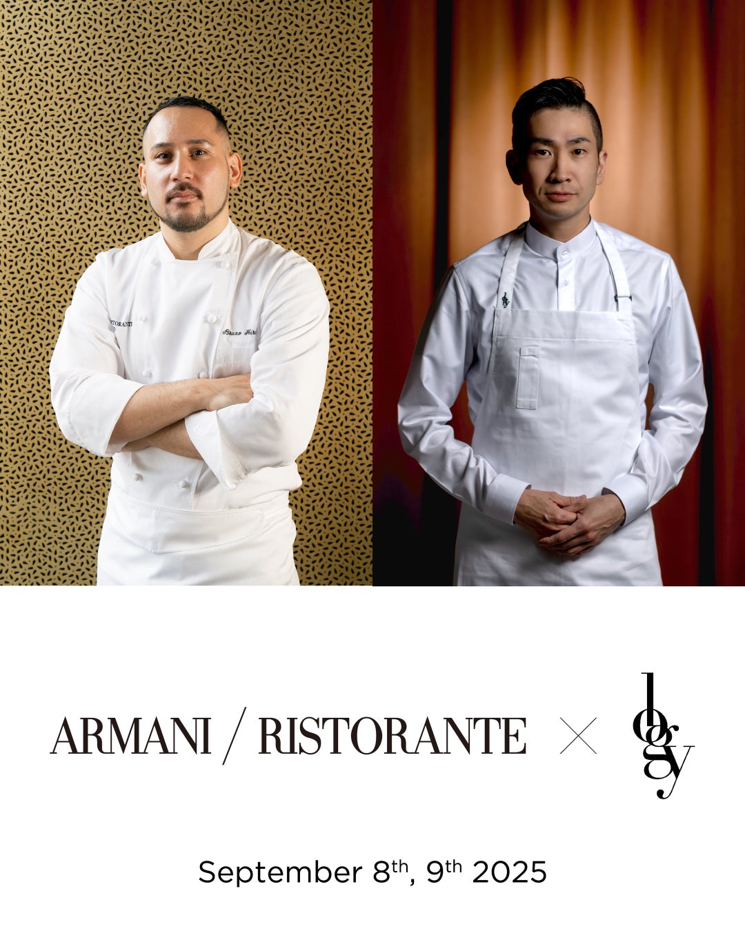 「ARMANI / RISTORANTE(アルマーニ / リストランテ)」が、台北を拠点に世界の美食家から注目を集める「logy(ロジー)」の田原諒悟シェフを迎え、2日間限定の夢の饗宴〈4 Hands Dinner〉を開催します。ミシュラン二つ星を獲得し、「アジアのベストレストラン50」で台湾最高位にも選ばれた「logy」は、アジアを代表するガストロノミーのひとつ。その田原シェフと、アルマーニの美学を“食”で表現する「ARMANI / RISTORANTE」のブルノ・昼間シェフ。それぞれの土地で独自のスタイルを築いてきたふたりが、“食を通して文化や感情に語りかける”という共通の哲学のもと、感性を交差させるスペシャルコースでお迎えします。