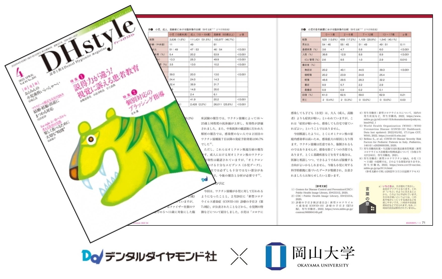 歯科総合出版社デンタルダイヤモンド社が発行している歯科衛生士向け月刊誌『DHstyle』に連載中の「感染制御学ノート」の新型コロナウイルス特集ページ(続報24)「小児例の特徴について」を期間限定で一般公開中です!