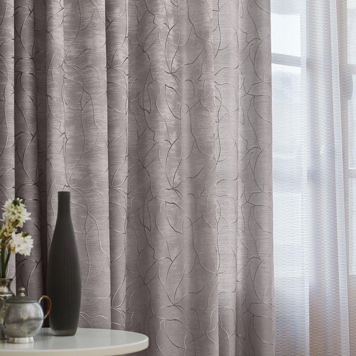 植物を感じさせる光沢糸のラインで躍動感のあるデザイン。防炎機能付き。