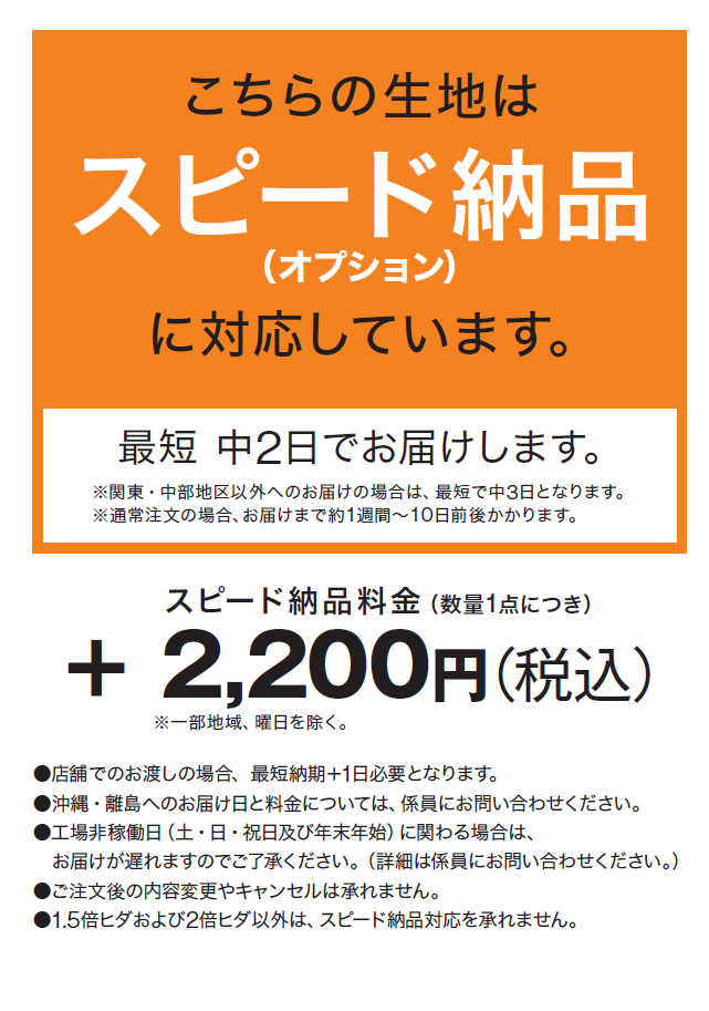 ※スピード納品は、1.5倍ヒダおよび2倍ヒダ仕様のみ対応可能となります。