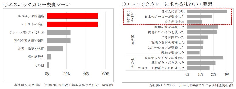 エスニックカレーの喫食シーンが外食から内食・中食へと広がる中で、本場の味わいとともに、日本人好みの味わいを求める傾向が強くなっています。
