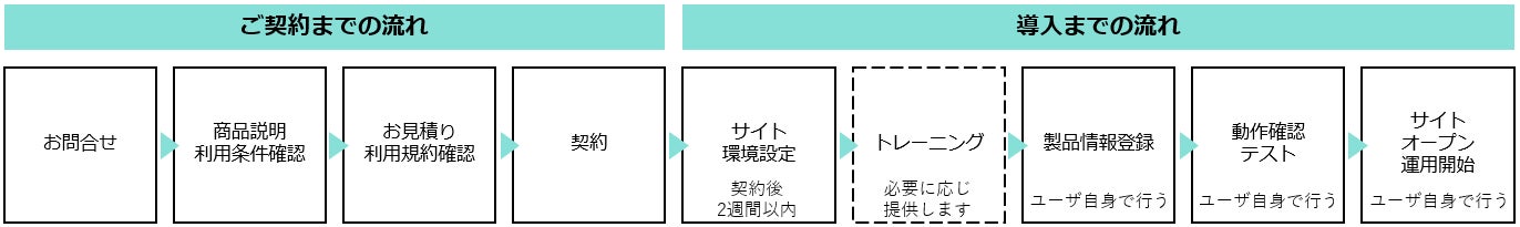 「Fleacia Product Selector」単体の導入ステップ例です。ご要望に応じたトレーニング実施、「Fleacia(フリーシア)」を構成するソリューション群の1つである「Fleacia CPQ フリーシアシーピーキュー (以下、Fleacia CPQ)」や既存の他システムとの連携などがある場合は、導入ステップもご要望にあわせカスタム対応します。