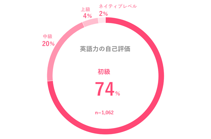 英語力の自己評価は「初級」が74%