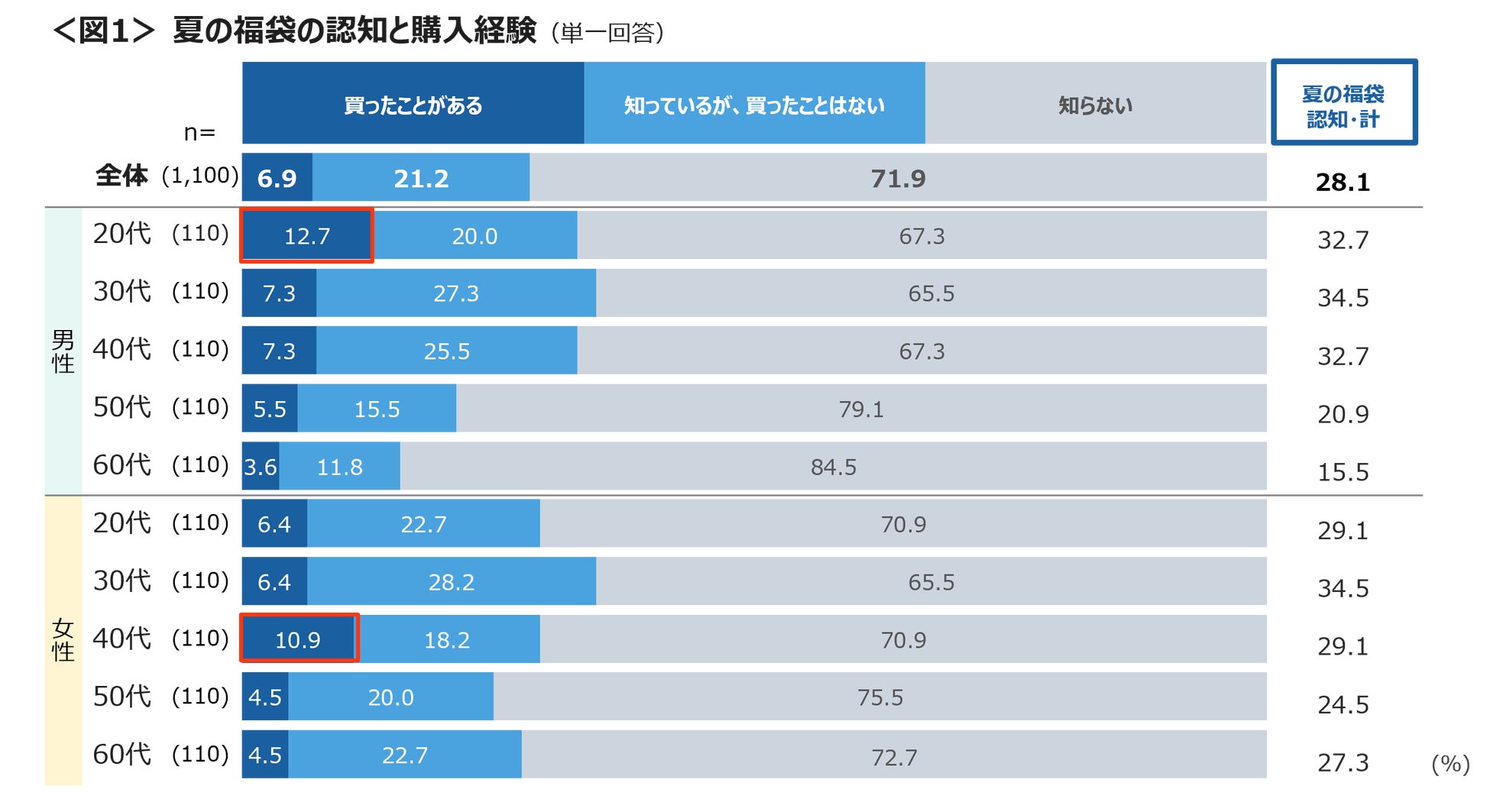 夏の福袋を「知っている」人は28.1%、「買ったことがある」人は6.9%。