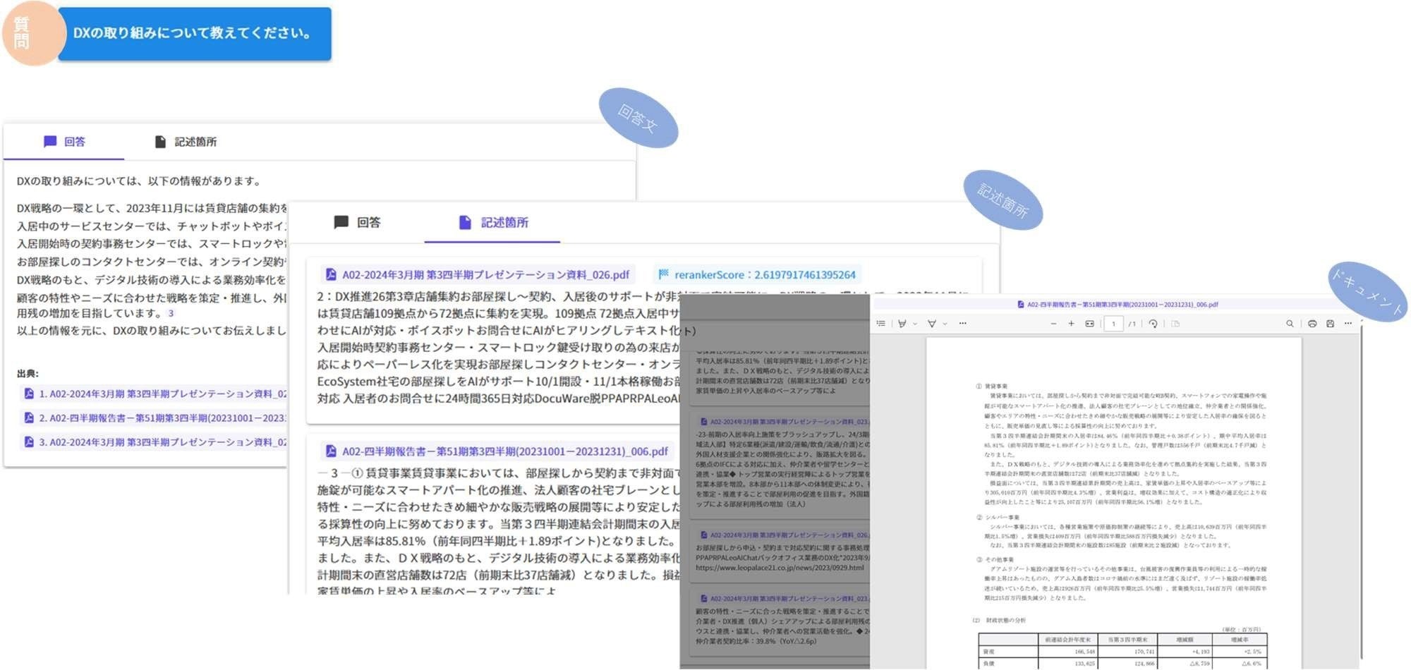 2024年内を目途に規約・マニュアルにとどまらない社内業務データの学習をすすめ、業務データとそれらのデータを応用した回答が可能なレベルまで生成AIの精度向上を図ります。今後も、AI技術を活用したデータドリブン経営の実現により、DXの推進を加速させてまいります。