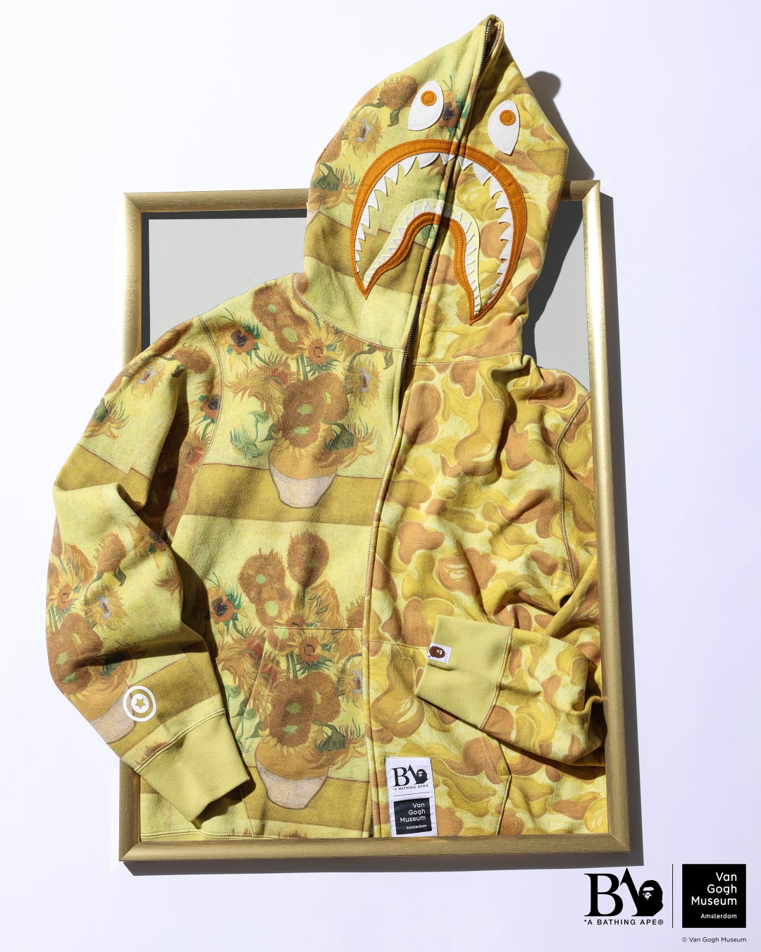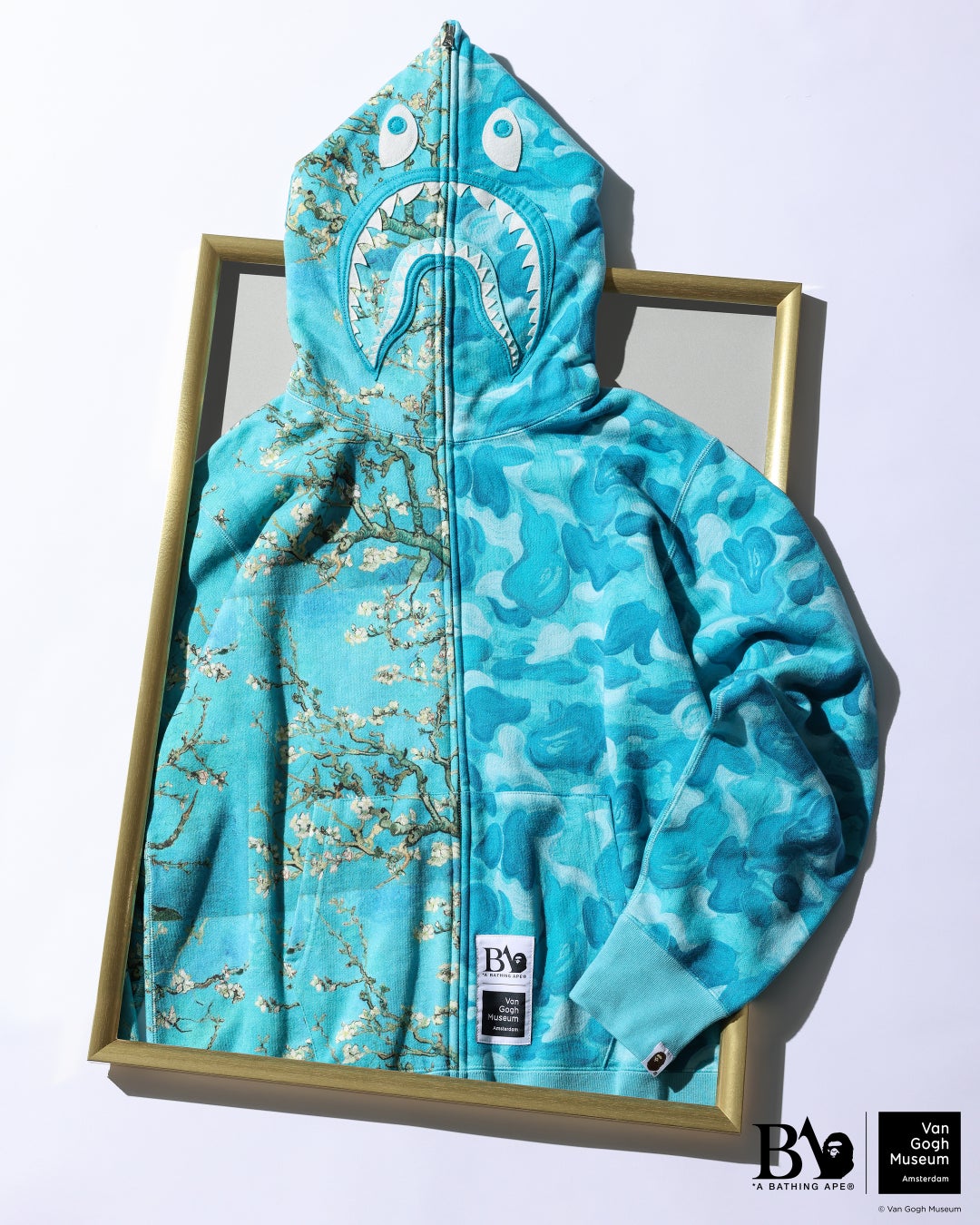 本コレクションでは、Tシャツ、ロングスリーブTシャツ、クルーネックスウェット、SHARK FULL ZIP HOODIEを展開。いずれもBAPE®︎のアイコニックなデザインとファン・ゴッホの作品が融合し、芸術とストリートの新たな接点を生み出しています。