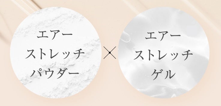 サラサラ感をキープするエアーストレッチパウダー*4と薄い高密着の膜をつくるエアーストレッチゲル*5を組み合わせた「エアーストレッチフィット処方」で崩れにくいなめらかな肌に仕上げます。