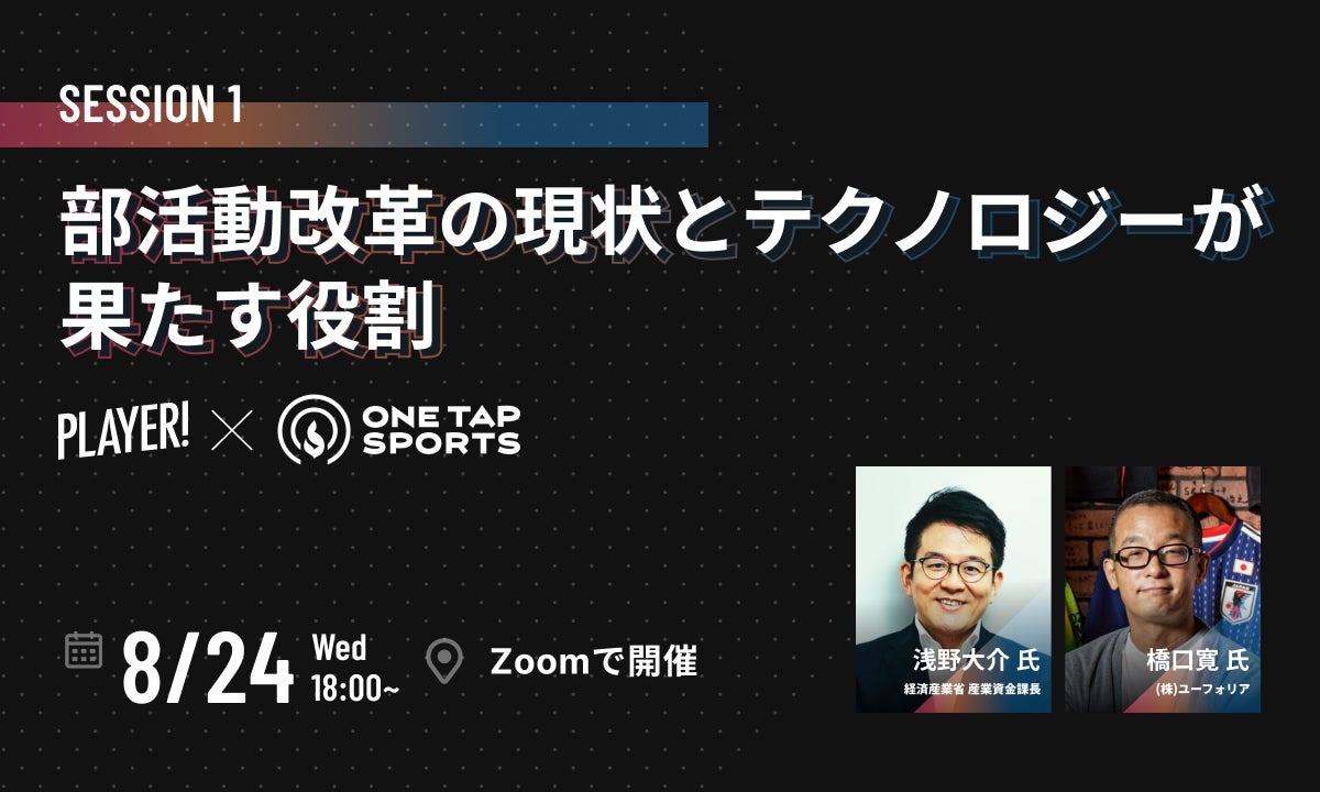 今回のカンファレンスではそのような悩みにこたえるべく、そもそも今部活動にどのような変化が起きているのか、学生がスポーツに取り組む環境をより良いものにするために何が必要なのか、そこでテクノロジーを活用する理由とは何なのかを、実践するチームの事例を交えてご紹介します。視聴者の皆様の明日の活動のアップデートにつなげることを目的に、スポーツチームのコンディション管理ソフト「ONE TAP SPORTS」と、チーム公式アプリを起点に収益化を支援する「Player! WHITE」が共同で企画いたしました。