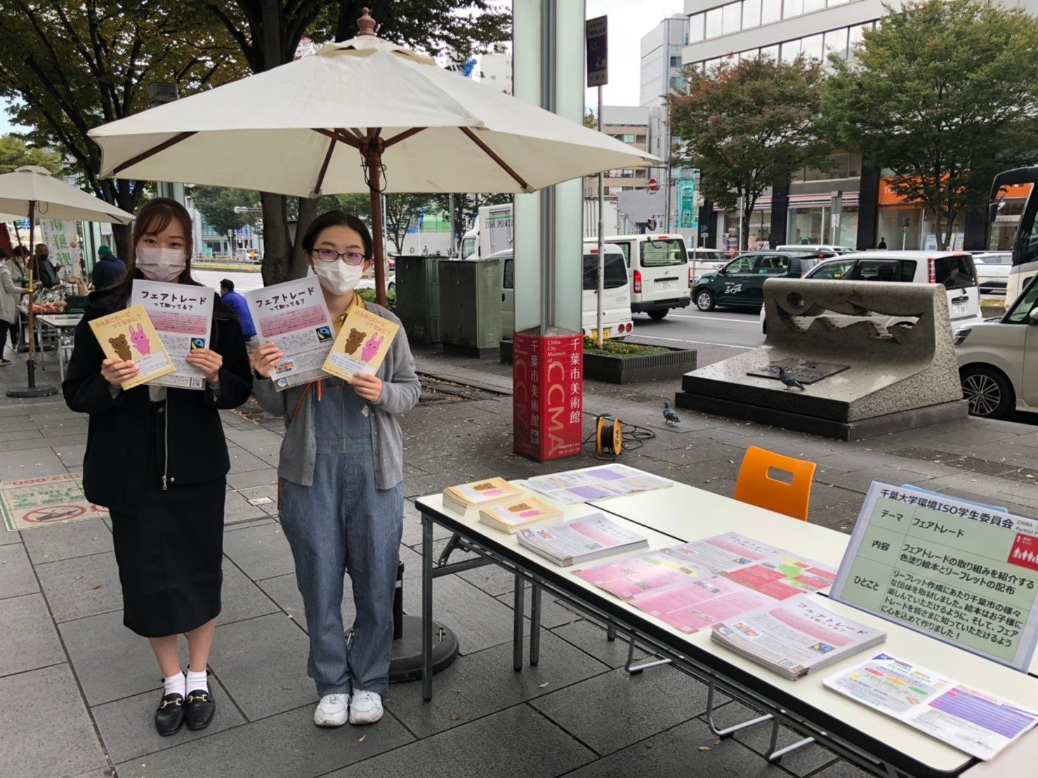 国立大学法人千葉大学の環境ISO学生委員会(以下、学生委員会)と株式会社京葉銀行(以下、京葉銀行)は、2017年度より協同でecoプロジェクトを実施しており、SDGs達成に向けた取り組みを行っています。 その一環として、学生がフェアトレードの普及啓発のために、ぬりえ絵本とリーフレットを作成し、10月に実施されたイベントで活用しました。