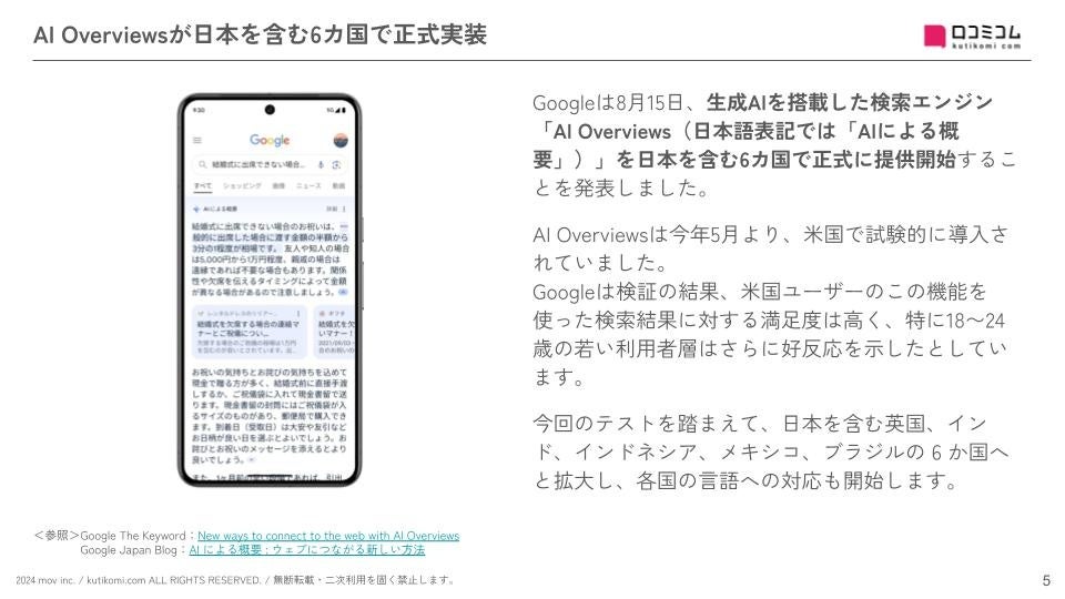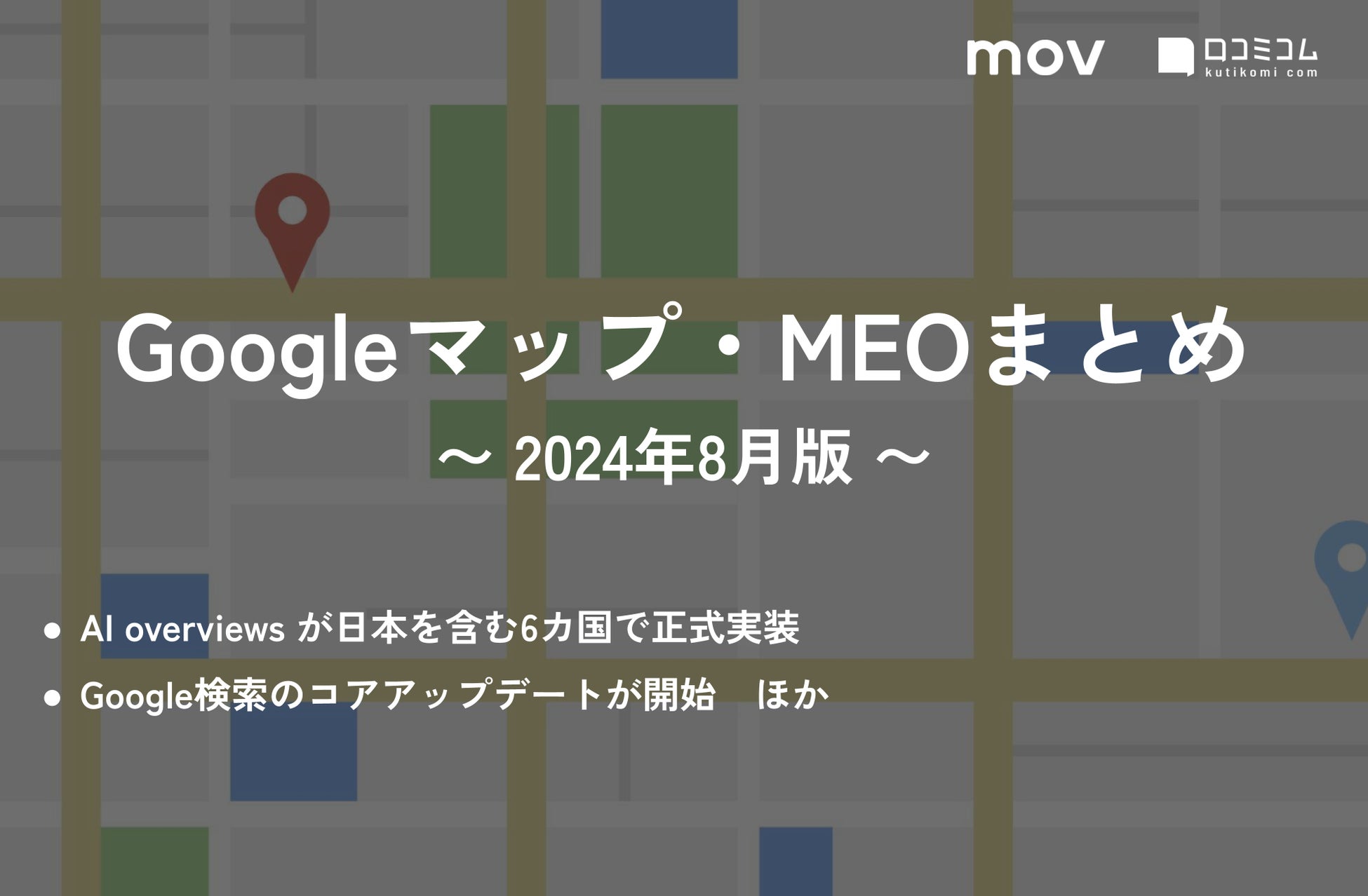 AI Overviewsが日本を含む6カ国で正式実装:最新の「Googleマップ・MEO」情報レポート【2024年8月版】を口コミコムが公開