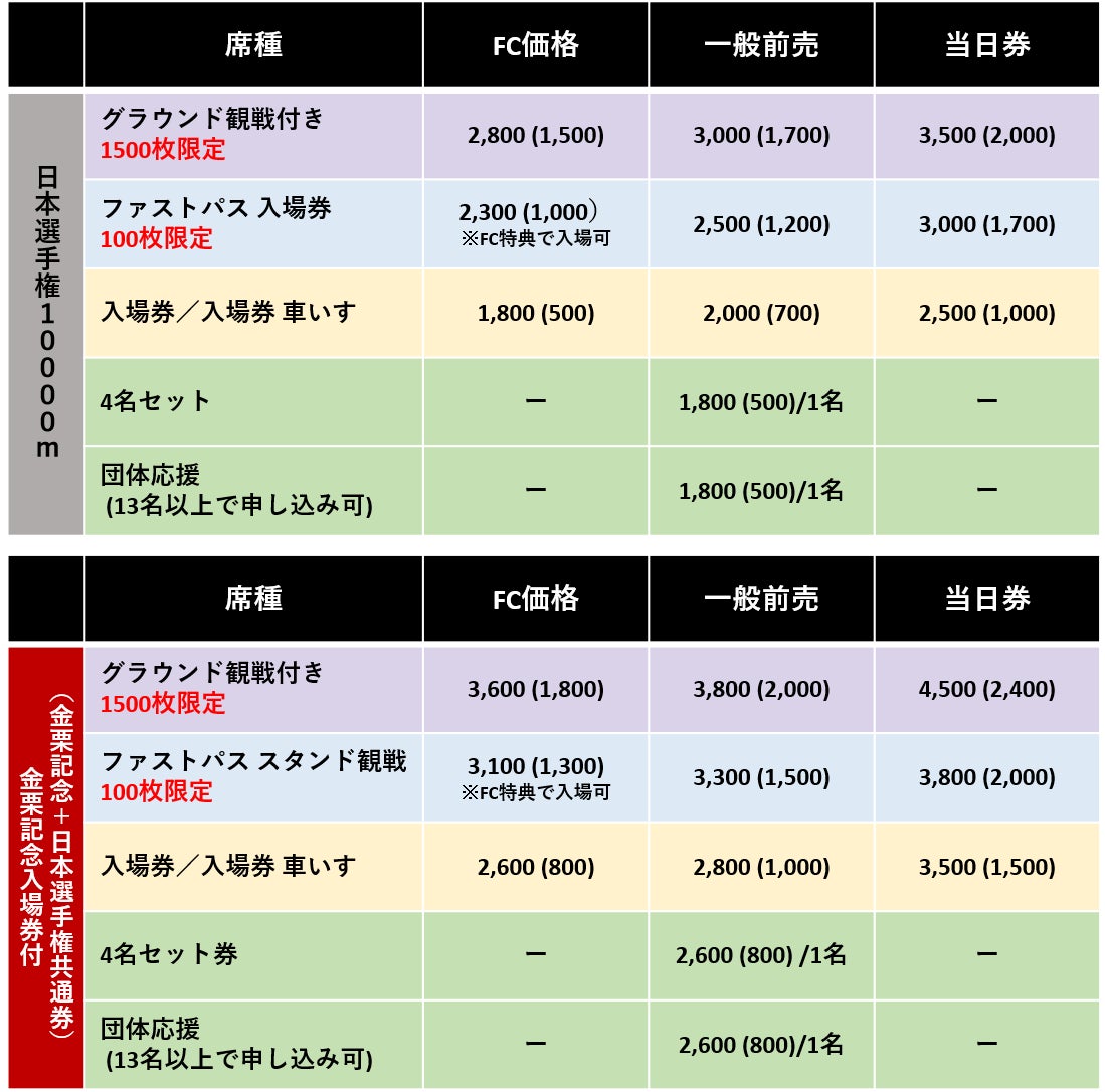 GP金栗記念と日本選手権10000mの両大会を観戦できるチケットとなります。