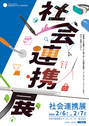 京都芸術大学(京都市左京区/学長:佐藤 卓)の併設校である京都芸術デザイン専門学校(京都市左京区/学校長:冨永 良子)では、2026年2月6日(金)・7日(土)の2日間、京都市勧業館みやこめっせにて「社会連携展」を開催します。