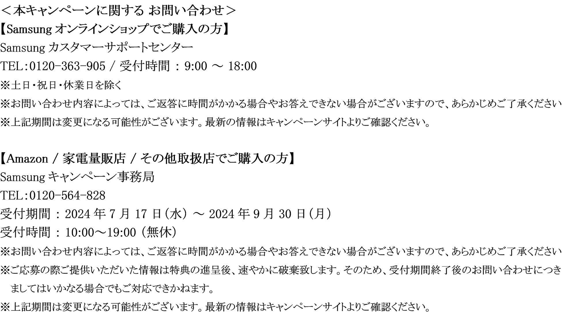 ※キャンペーンに参加する前に、Samsungオンラインショップ利用規約<https://shop.samsung.com/jp/termsandconditions>を必ずご確認ください。
