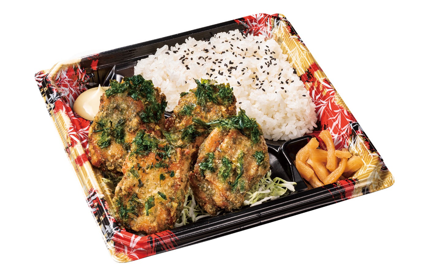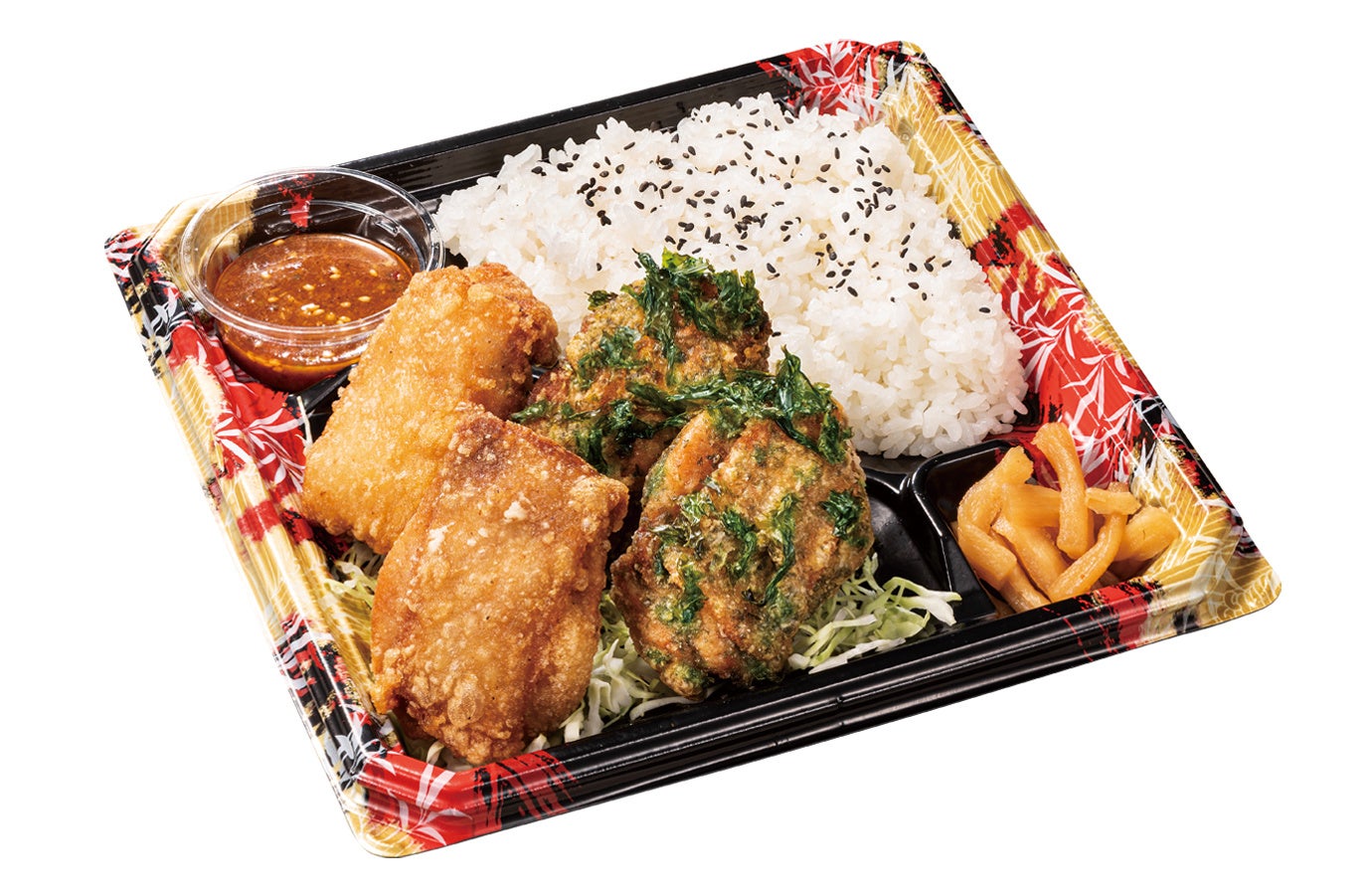 のり塩からあげ2個/カリッともも2個/千切りキャベツ/漬物/タレ1種