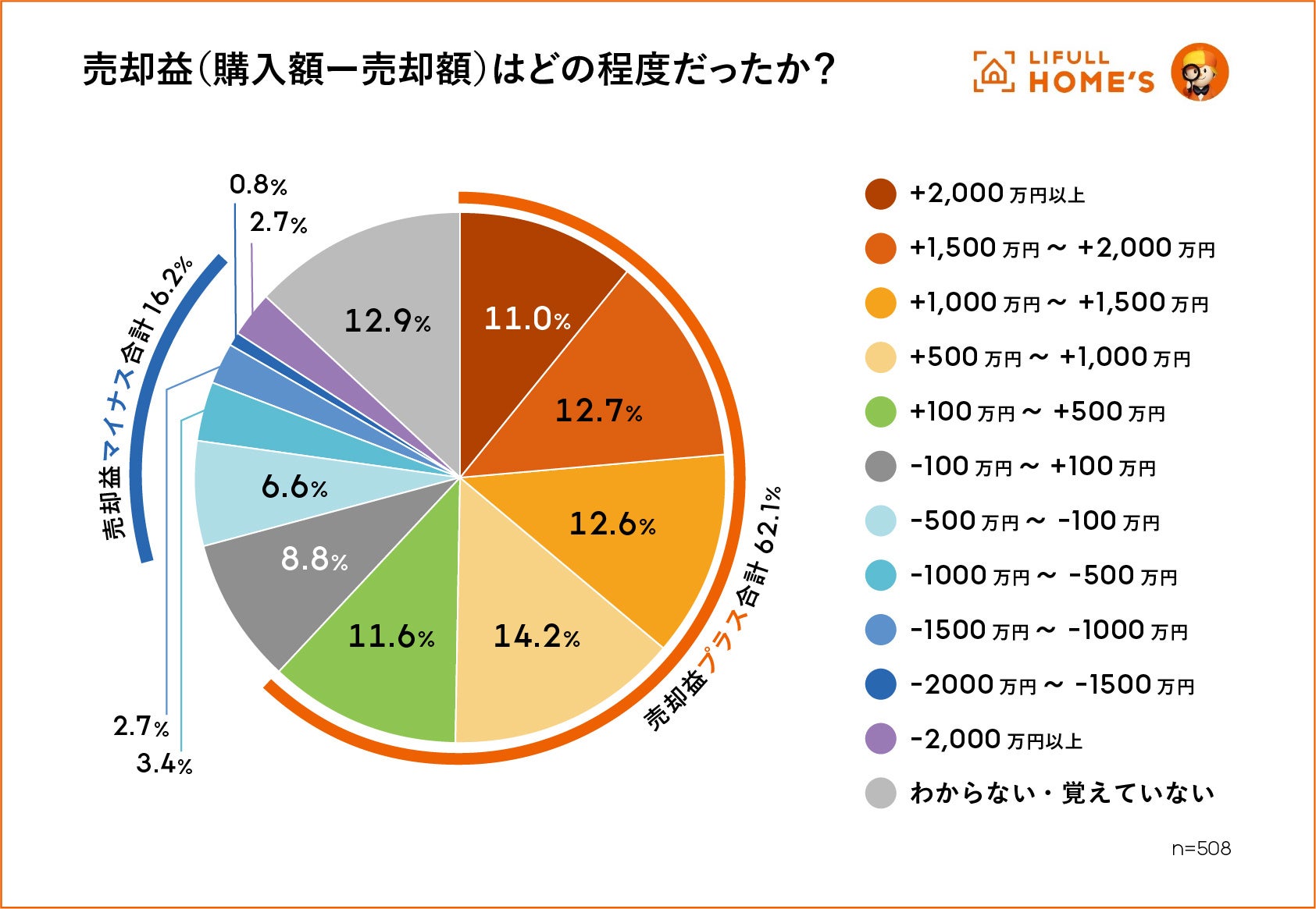 ・売却益がプラスになった人は6割超え、1,000万以上も36.3%に上る