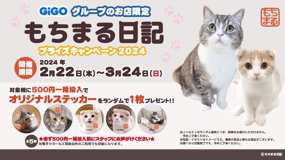 株式会社GENDA GiGO Entertainment(本社:東京都港区 代表取締役社長:二宮 一浩 以下当社)は GiGOグループのお店におきまして、YouTubeチャンネル『もちまる日記』とコラボしたキャンペーンを「猫の日」にちなんだ2024年2月22日(木)より開催いたします。