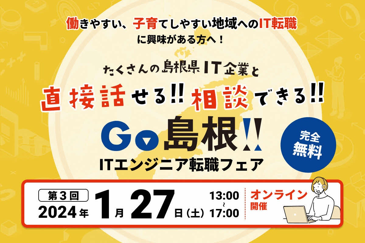 島根県内のIT企業が集結する!「GO島根!ITエンジニア転職フェア」をオンラインで開催します!