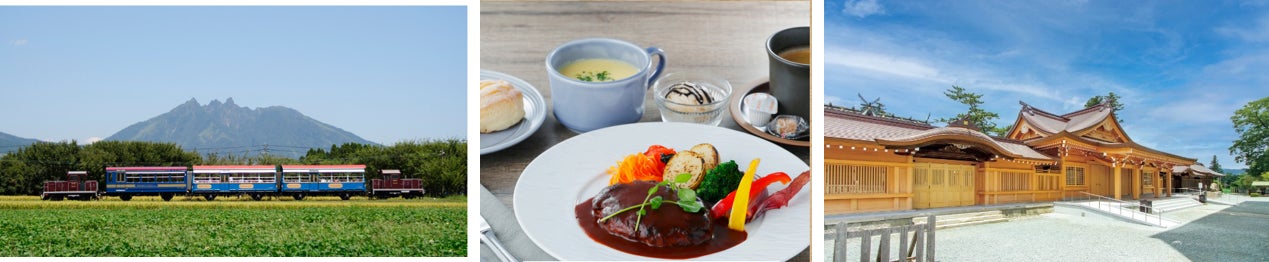 南阿蘇鉄道トロッコ列車では、ユーモアあふれる沿線ガイドを楽しみながら、開放感たっぷりの車内から南阿蘇の大パノラマを満喫できます。昼食は、草千里の目の前にあるレストラン「douce Nucca」へご案内。雄大な景色に癒されながらあか牛ハンバーグランチをお楽しみください。また、全国に約500社ある阿蘇神社の総本社で、神殿や楼門などの6棟が重要文化財に指定されている阿蘇神社を参拝します。中でも楼門は九州最大の規模を誇り、「日本三大楼門」の一つとされています。