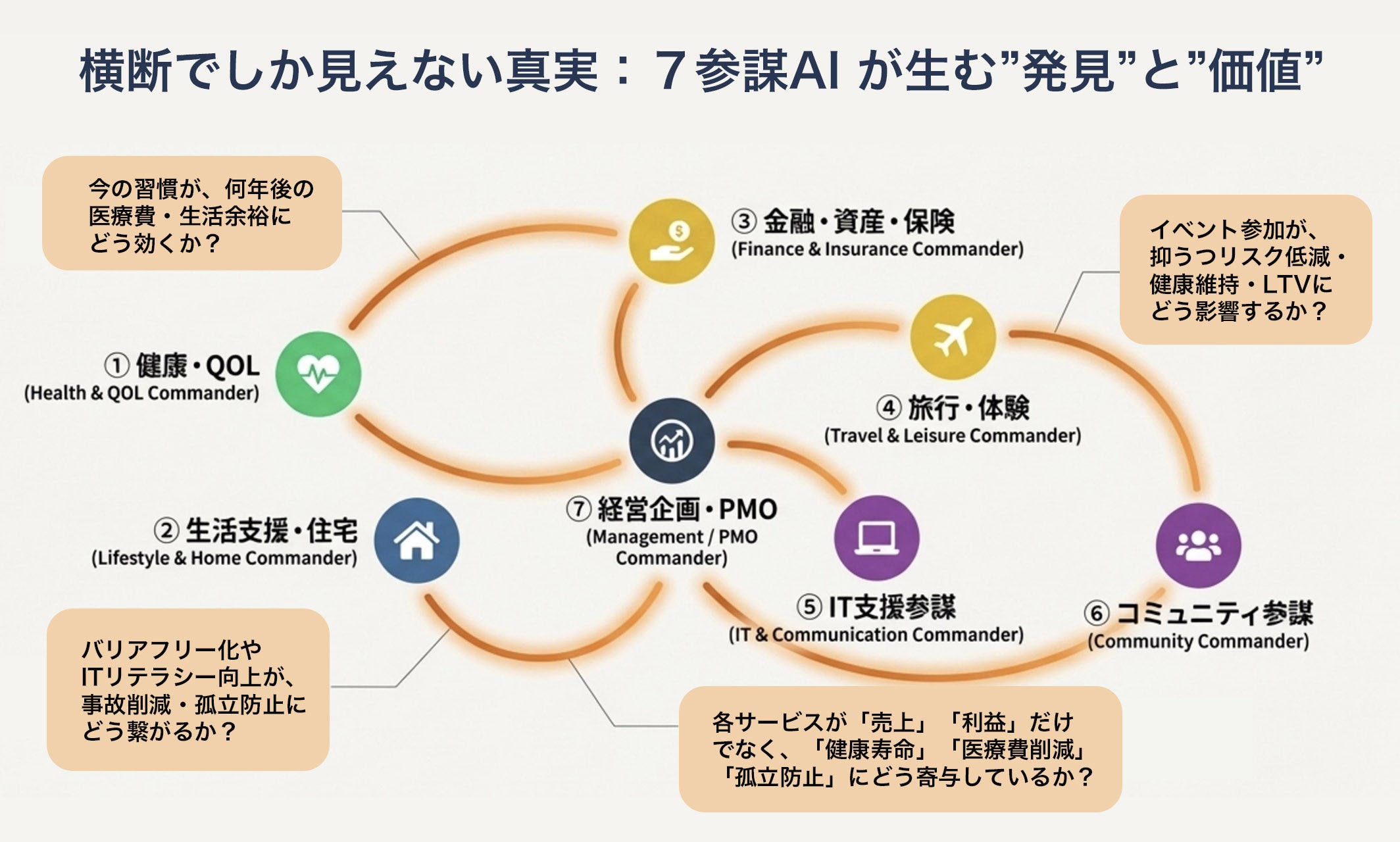 ~健康・生活・金融・旅行・IT・コミュニティ・経営の7領域を統合し、高齢者の人生価値・事業収益・社会貢献の同時最大化を実現〜