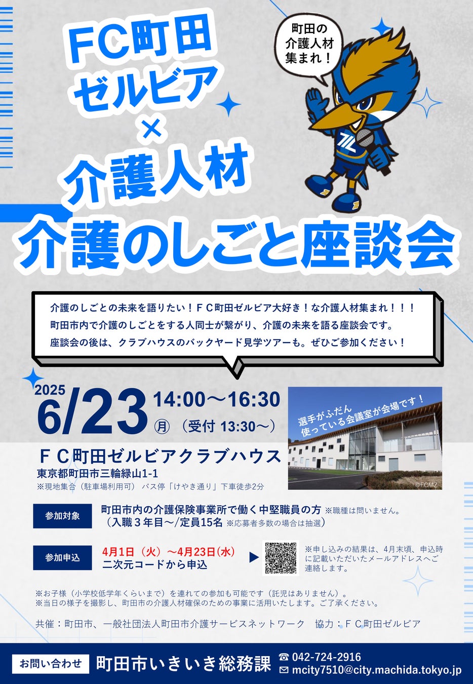 【東京都町田市】「FC町田ゼルビア×介護人材」介護のしごと座談会を6月23日に開催します