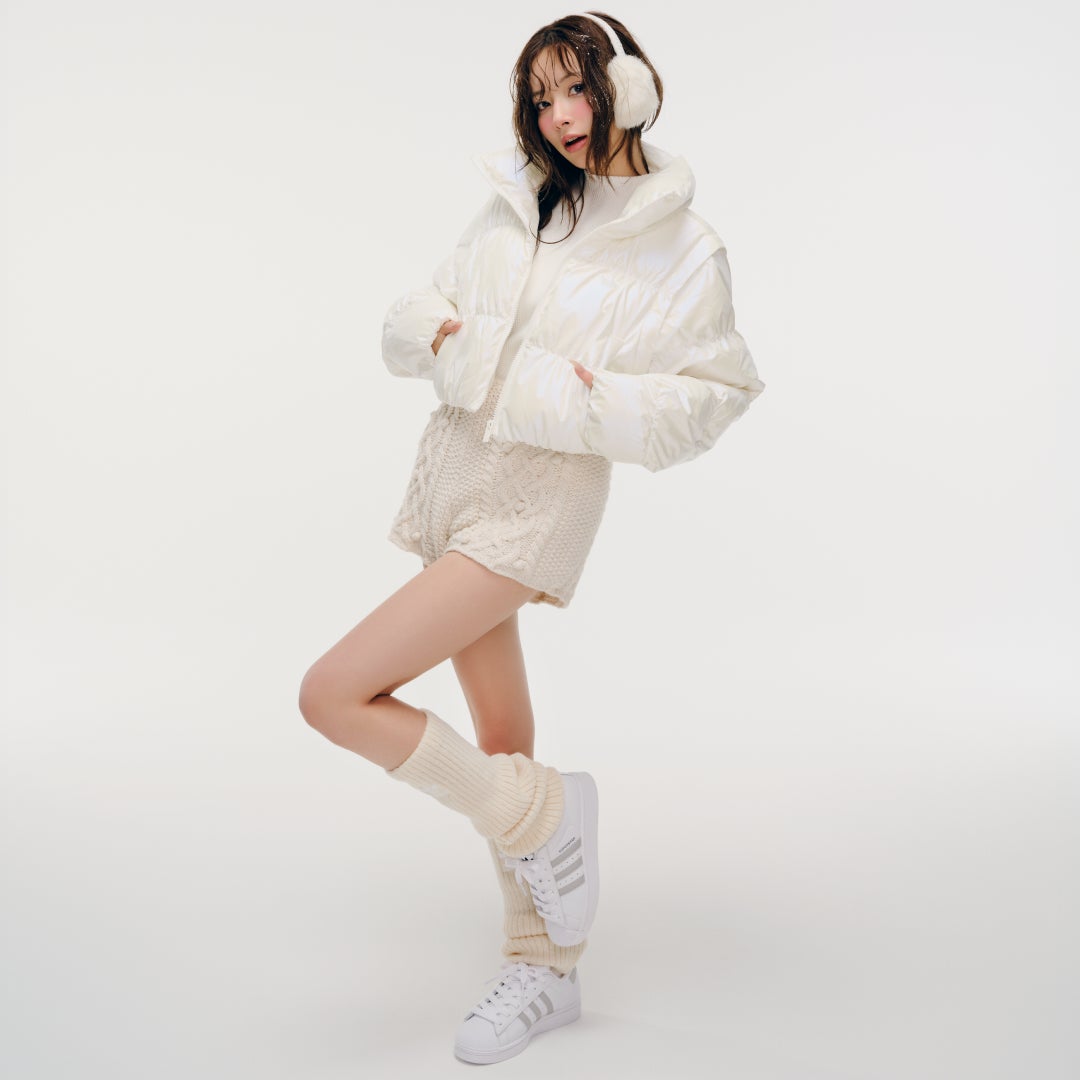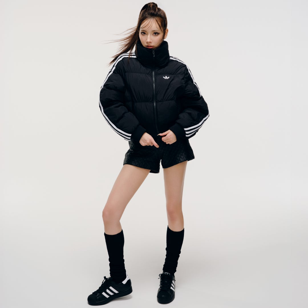 スリーストライプスが印象的な軽量パファージャケットや、滑らかな合成皮革を使用したトレンドシルエットが特徴のボンバージャケットなど、機能性とファッション性を兼ね備えたアイテムをラインアップ。さらに、トレンドのクロップド丈や2-in-1仕様など、日常のスタイリングに“抜け感”と“個性”をプラスできるデザインを採用しています。ストリート・フェミニン・モードなど、多様なテイストに自在にマッチし、冬のファッションを軽やかにアップデートするコレクションです。