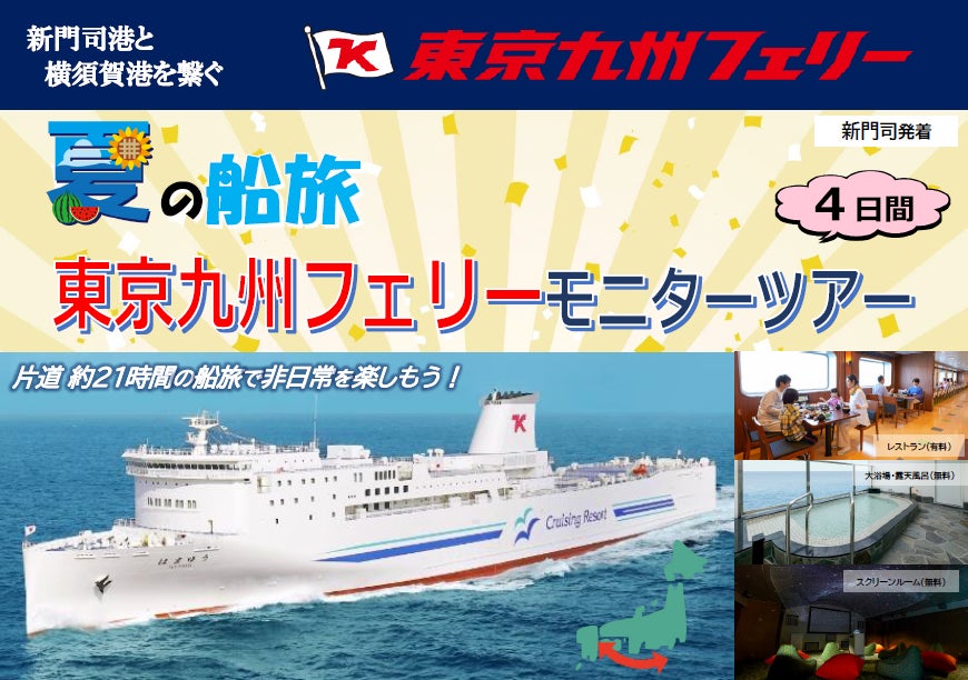 【新門司発】船旅体験!日にち限定!東京九州フェリーモニターツアー夏商品発売!