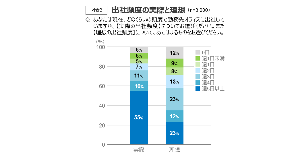 出社頻度の理想と実際の乖離