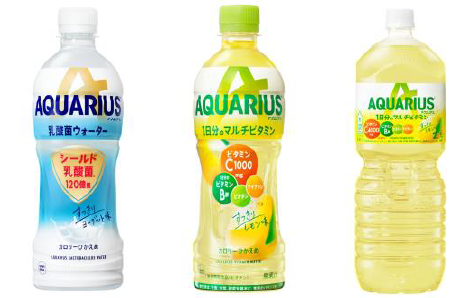 対象製品: 「アクエリアス」(500mlPET)、「アクエリアス ゼロ」(500mlPET)、「アクエリアス 乳酸菌ウォーター」(500mlPET)、「アクエリアス 1日分のマルチビタミン」(500mlPET)
