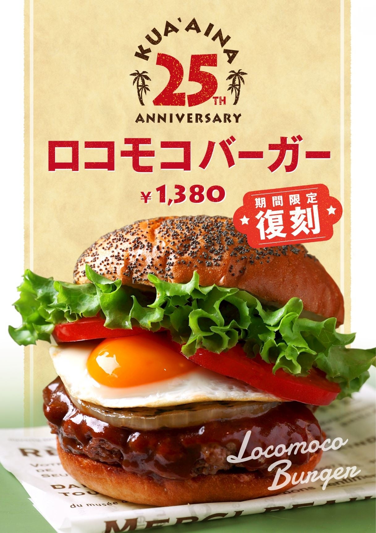 クア・アイナ日本上陸25周年を記念して、期間限定の復刻販売を実施する「ロコモコバーガー」を、是非この機会にお楽しみください!