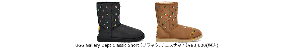 アーティスト ジョシュ・トーマスがスタジオにいるときは、いつもクラシックブーツがあります。 彼の UGGとの個人的なつながりが、彼のブランドである Gallery Dept. とのコラボレーションを生み、そしてこのアイコニックなシルエットの解釈にインスピレーションを与えました。 チェスナットカラーのスエードとブラック レザーの UGG Gallery Dept Classic Short(アグ ギャラリー デプト クラシック ショート)は、彼のペイント スプラッターの美学を反映したビジュ―とスタッズが特徴です。アッパーには環境再生型農業を実践する農場から仕入れたツインフェイスのシープスキンを使用し、リッチなスエード、または、大切に使用されてきたかのような、表面加工をしたレザーで仕上げられています。チェスナットカラーに施されたペイントデザインは手作業で加えられているため、一足一足がユニークなものとなっています。