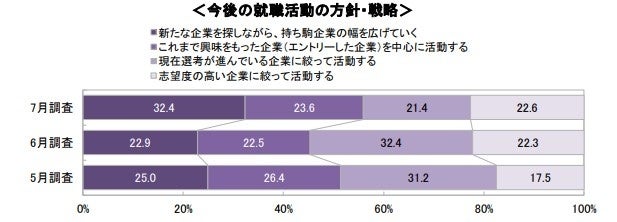 ○「新たな企業を探しながら、幅広く企業を広げる」が 6 月より大きく増加(22.9%→32.4%)