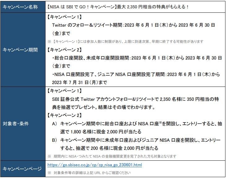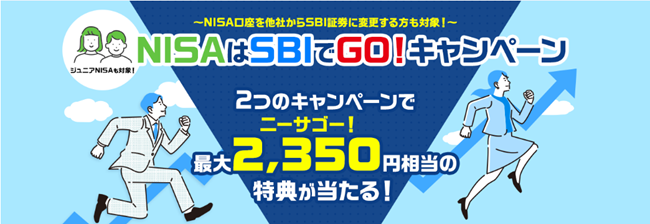 最大2,350(ニーサゴー)円相当もらえる!「NISAはSBIでGO!」キャンペーン実施のお知らせ
