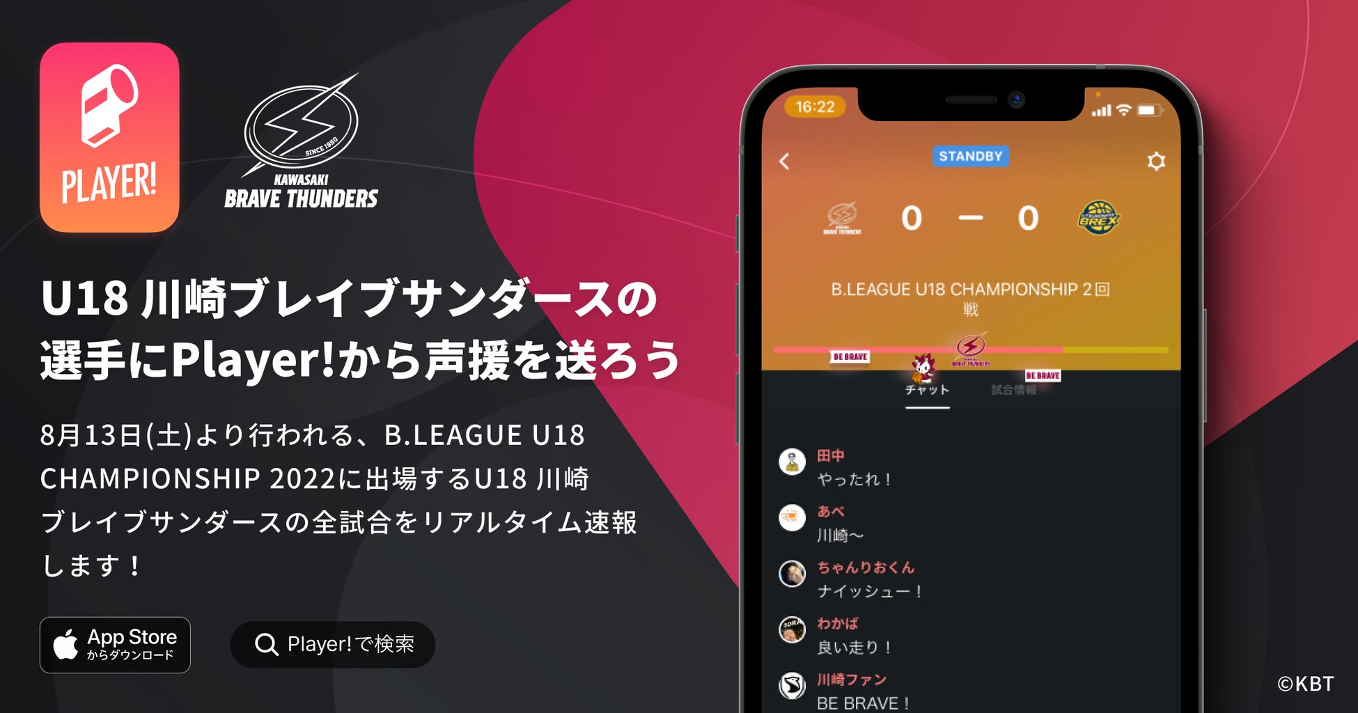 スポーツスタートアップ企業 ookami は、スポーツエンターテイメントアプリ「Player!」において、8/13(土)より行われるB.LEAGUE U18 CHAMPIONSHIP 2022に出場するU18 川崎ブレイブサンダースのテキスト速報を行うのと同時に、試合中の取り組みとして、