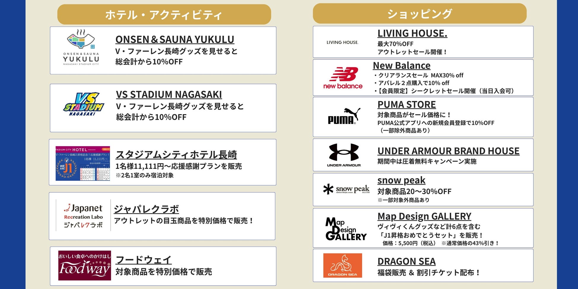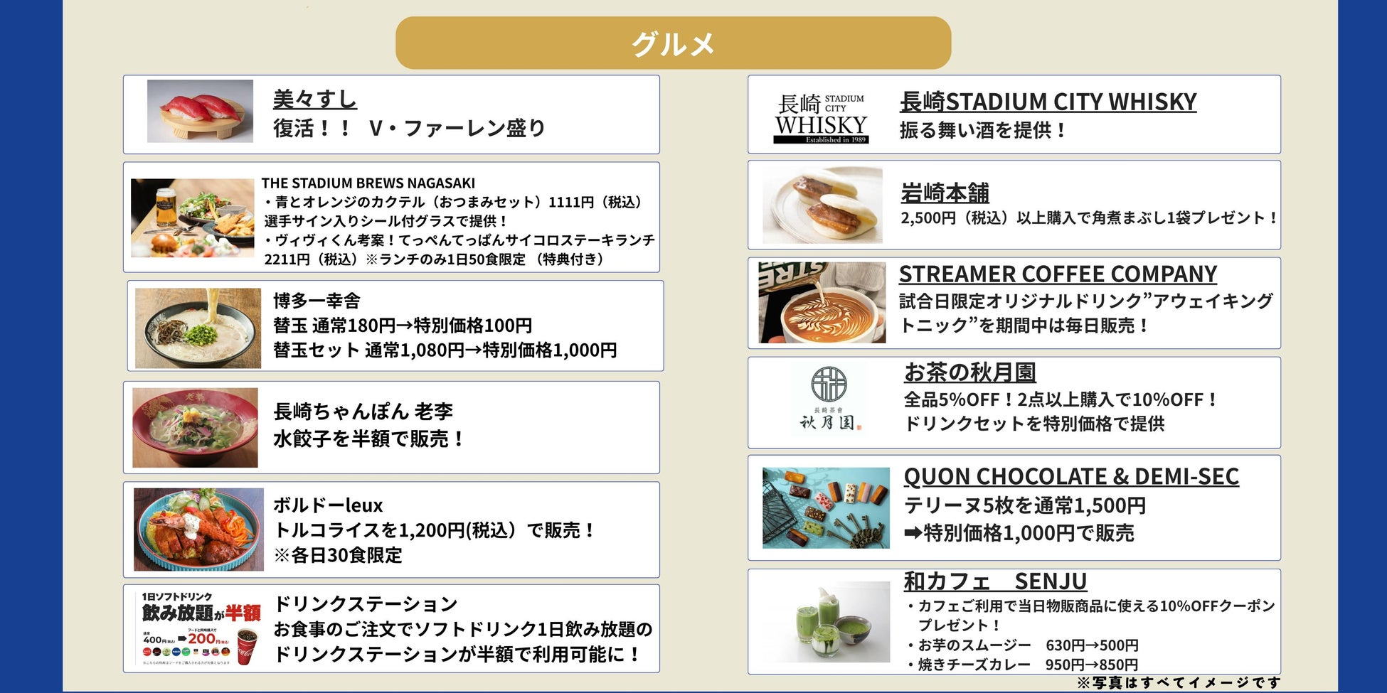 ■その他にも長崎スタジアムシティの各店舗でV・ファーレン長崎のJ1昇格を祝う特別プラン・商品を販売
