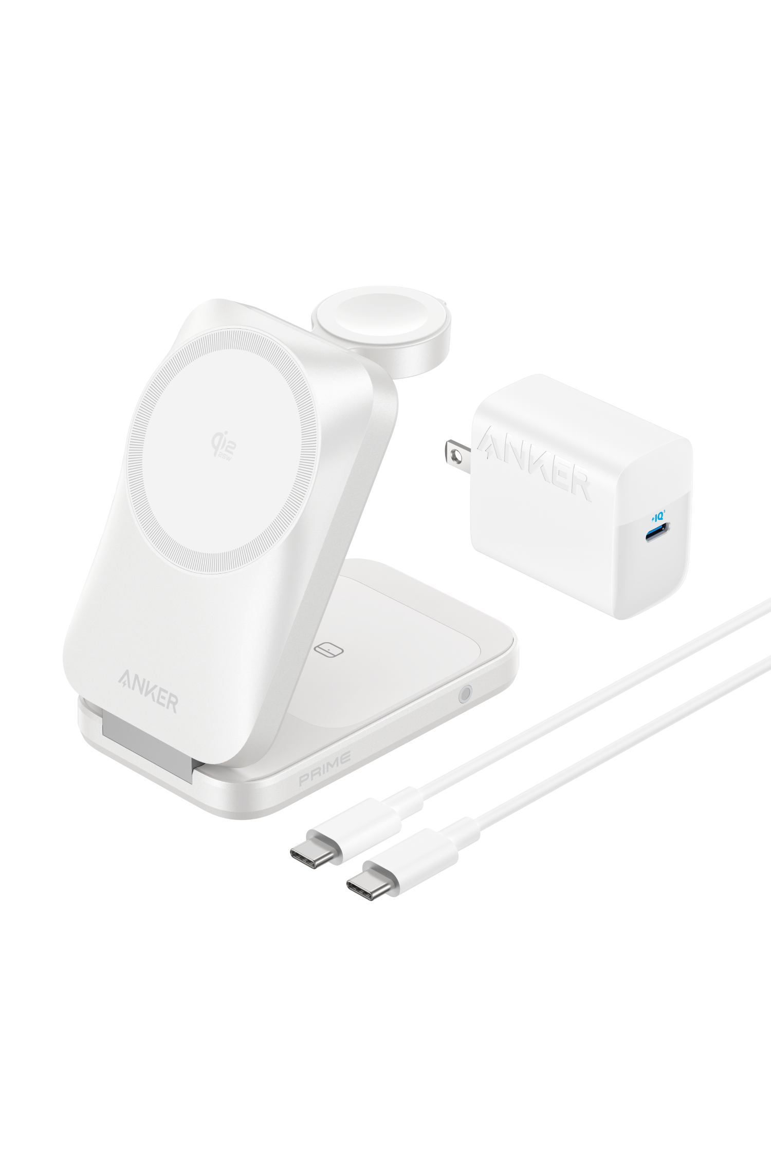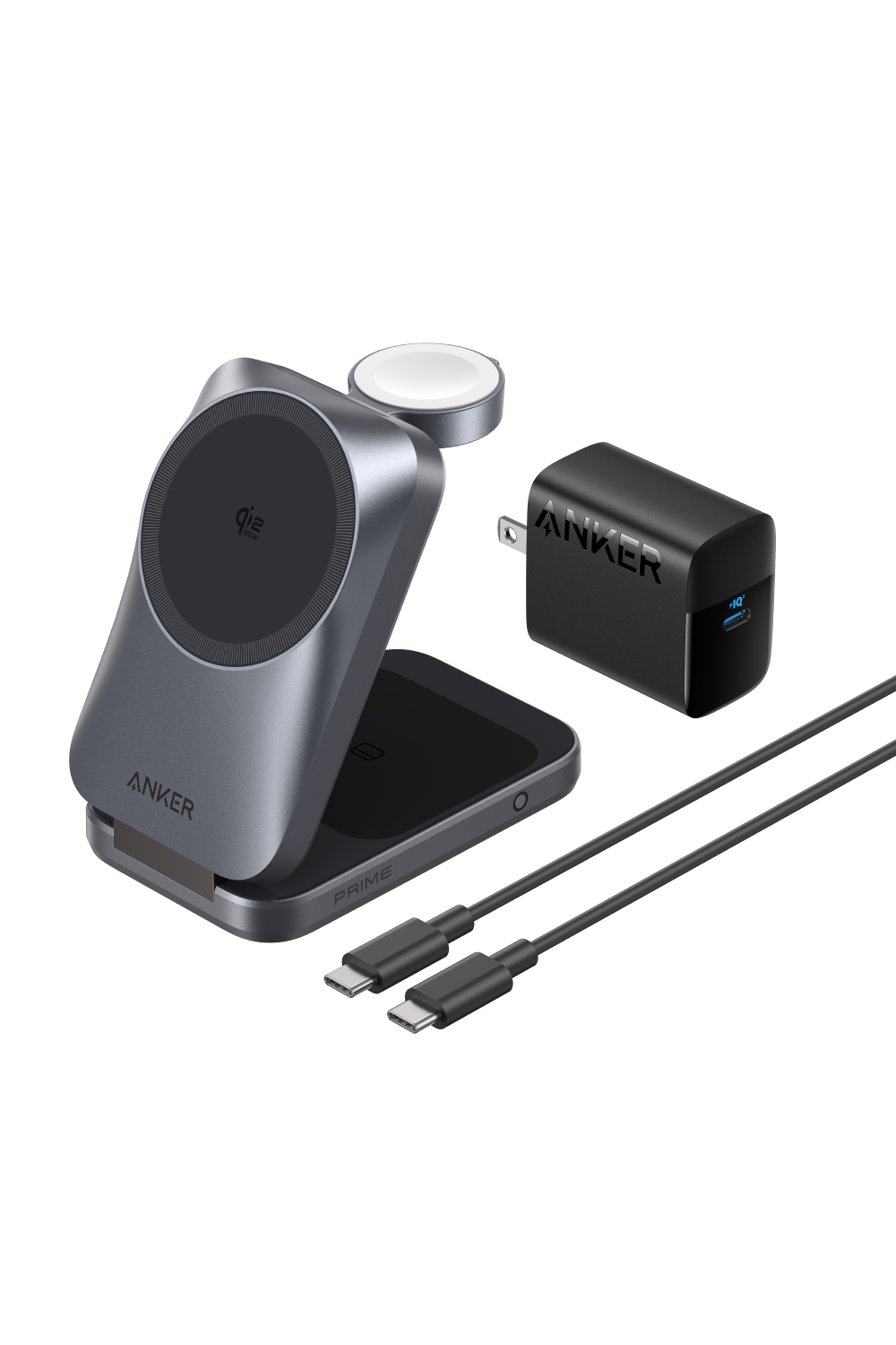 Anker Prime Wireless Charging Station(3-in-1, MagGo, AirCool, Foldable)、USB-C & USB-Cケーブル(1.5m)、USB急速充電器(45W)、取扱説明書 |