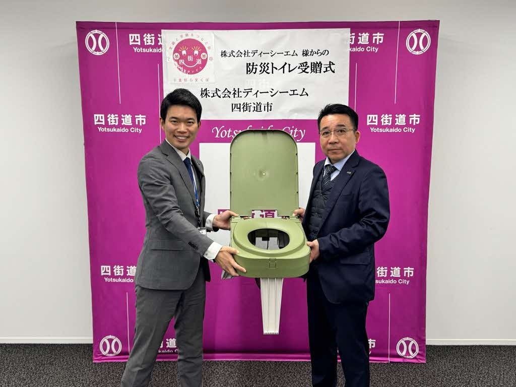 株式会社ディーシーエムから四街道市へ災害時用トイレを寄贈受贈式を行いました四街道市役所2026年3月18日 14時14分いいね!数を読み込み中です令和8年3月16日(月)に、株式会社ディーシーエムから、携帯性にも優れた折りたたみ式簡易トイレ等を寄贈いただきました。 (写真左から鈴木市長、株式会社ディーシーエム代表取締役社長 山﨑眞由 (敬称略)) 日時 令和8年3月16日(月) 11時~ 会場 四街道市役所 本館1号棟3階 特別会議室 寄贈者 株式会社ディーシーエム 寄贈物 防災トイレ(洋式便座)20台及び使用に必要な消耗品等 すべての画像種類その他 ビジネスカテゴリ政治・官公庁・地方自治体キーワード四街道防災災害トイレ寄贈ダウンロードプレスリリース素材このプレスリリース内で使われている画像ファイルがダウンロードできます