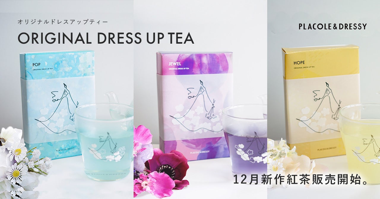 『個性が煌めく魔法の言葉』 "100人の人生に100通りに煌めく魔法をかける"をテーマに創設された古都鎌倉発のラグジュアリーブランド、PLACOLE&DRESSY(プラコレ&ドレシー)がプロデュースする名古屋駅直結KITTE名古屋3Fウェディングのテーマパークカフェ『DRESSY CAFE -きらめく魔法にかかる空間-』と専用ECサイト『DRESSY ONLINE』にて販売しているオリジナルブレンドティーと農薬不使用のエディブルフラワー(食用花)のセットに新作紅茶『JEWEL(ジュエル)』『POP(ポップ)』『HOPE(ホープ)』の3種が仲間入り!1から独自で調合したオリジナルブレンドは、香り高く、華やかなカラーが特徴的です。 それぞれのフレーバーに込められたメッセージと、色鮮やかな花のパッケージは、特別な瞬間を彩るためのギフトにもぴったりです。期是非おうちで、PLACOLE&DRESSYがつくる自慢の紅茶をお楽しみください。
