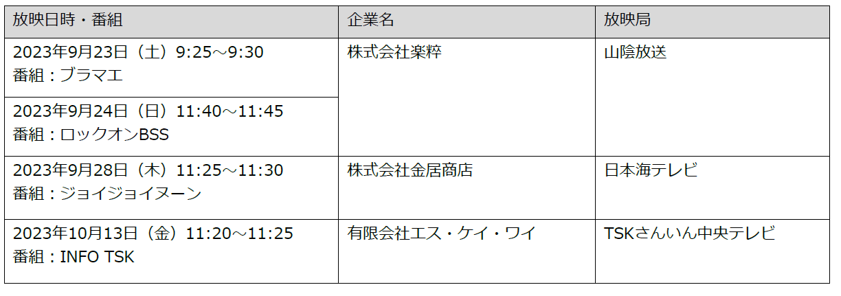 「山陰放送」「日本海テレビ」「TSKさんいん中央テレビ」とともにコンテンツ制作
