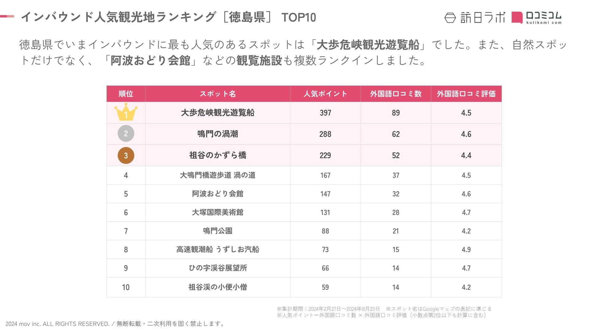 <インバウンド人気観光スポットランキング[徳島県編] TOP10>