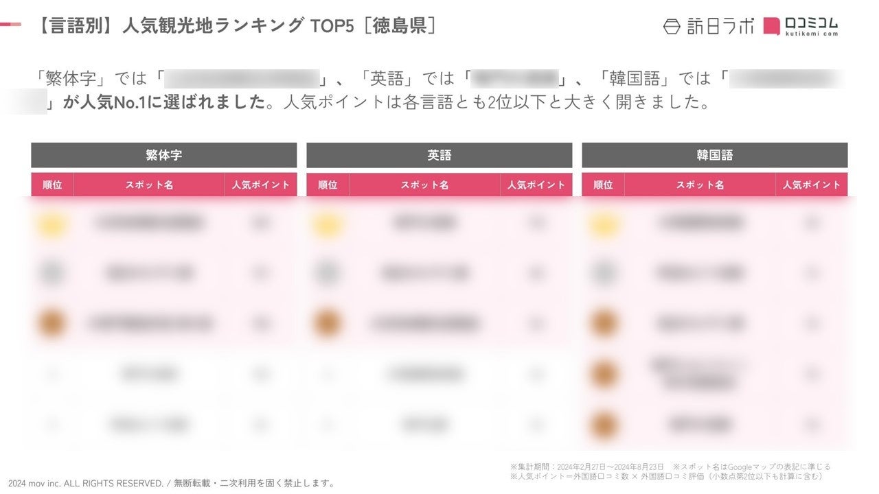 「繁体字」「英語」「韓国語」ではそれぞれ異なるスポットが人気No.1に選ばれました。