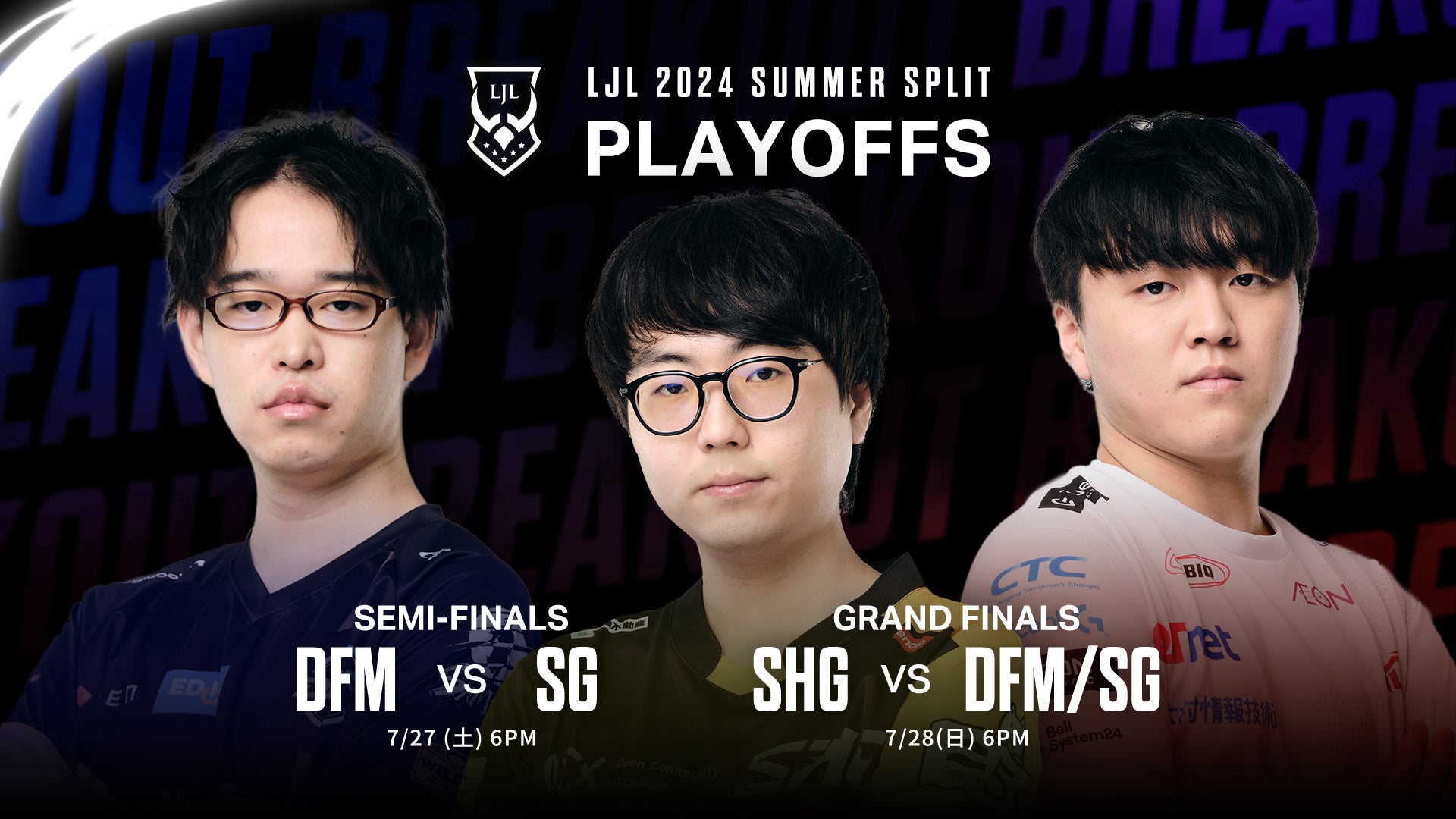 「LJL 2024 Summer Split」を勝ち残った DetonatioN FocusMe(DFM)、Sengoku Gaming(SG)、Fukuoka SoftBank HAWKS gaming(SHG)が 「LJL 2024 Summer Split」の 王者の座を争います。