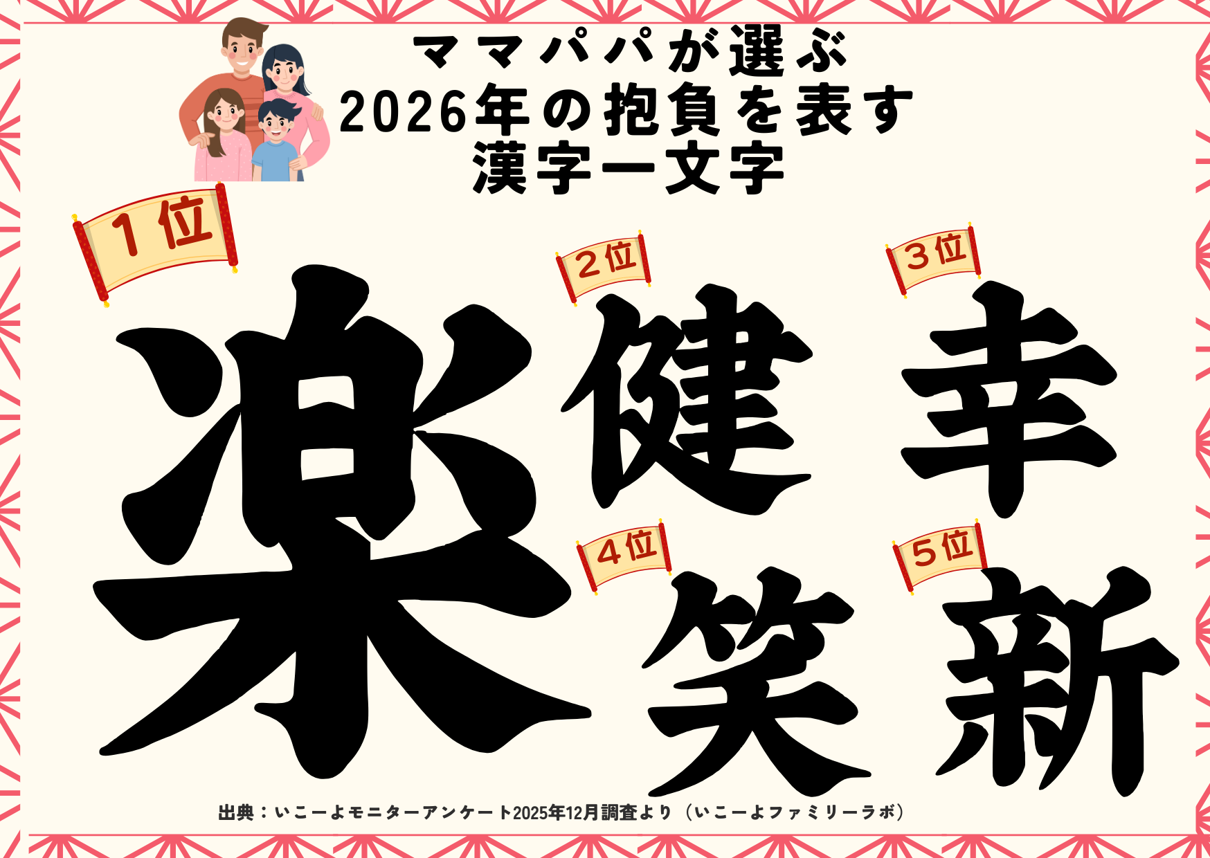 発表!2026年ママパパの「今年の抱負」ランキング 1位は「楽」─“楽しむ”と“楽々・気楽に”の2つの願い/いこーよファミリーラボ調査【2025⁻2026年年末年始の子育て世帯の実態と予測調査第3弾】